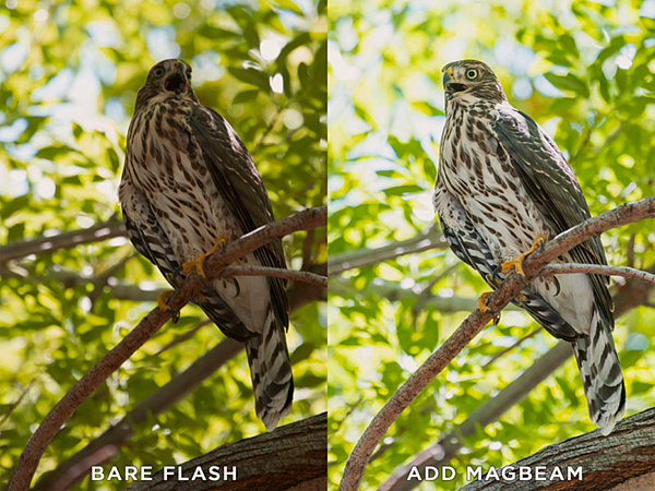 (圖左:只使用閃光燈裸光,圖右:同時使用磁力增距器MagBeam)